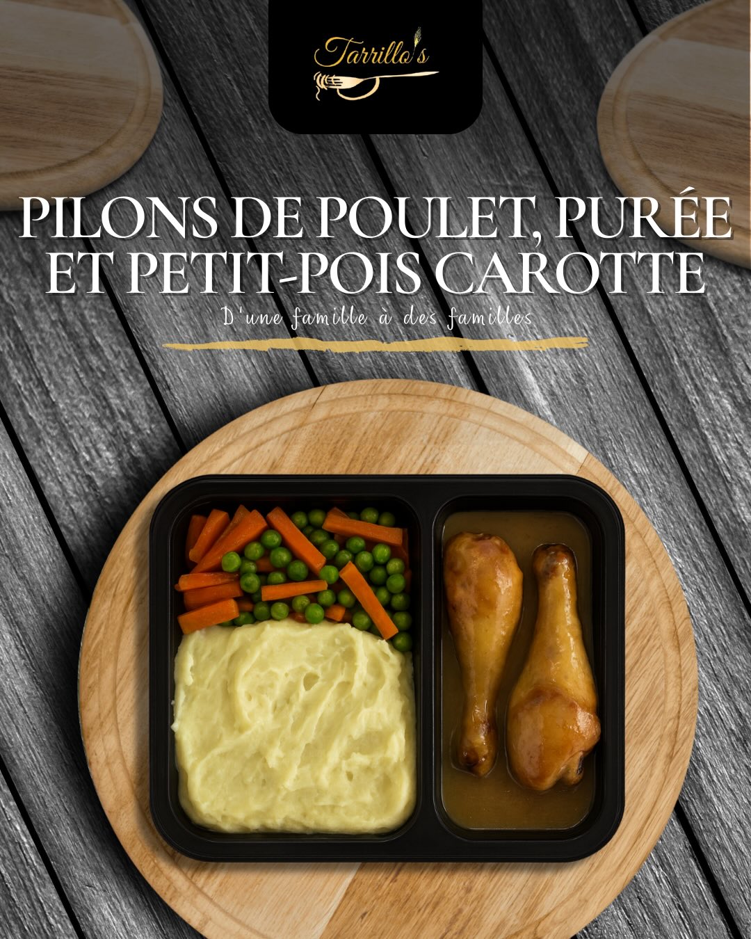 Savourez des pilons de poulet tendres et dorés, accompagnés d'une purée onctueuse et de petits pois-carottes délicatement cuisinés. Ce trio intemporel offre un équilibre parfait entre douceur, générosité et simplicité. Prêt en quelques minutes, ce plat familial apporte à votre table la chaleur d'un repas fait maison, pour un moment de plaisir authentique et rassurant.